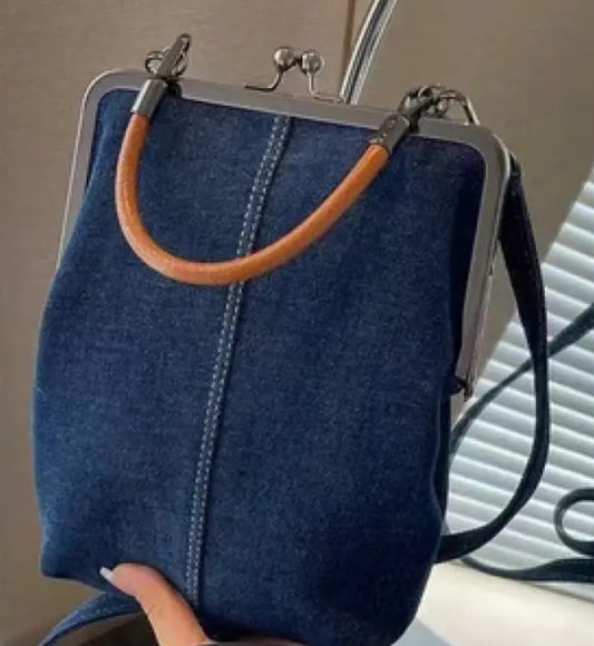 Your new go-to trio: a sleek denim cap, matching purse, and earrings to complete any...