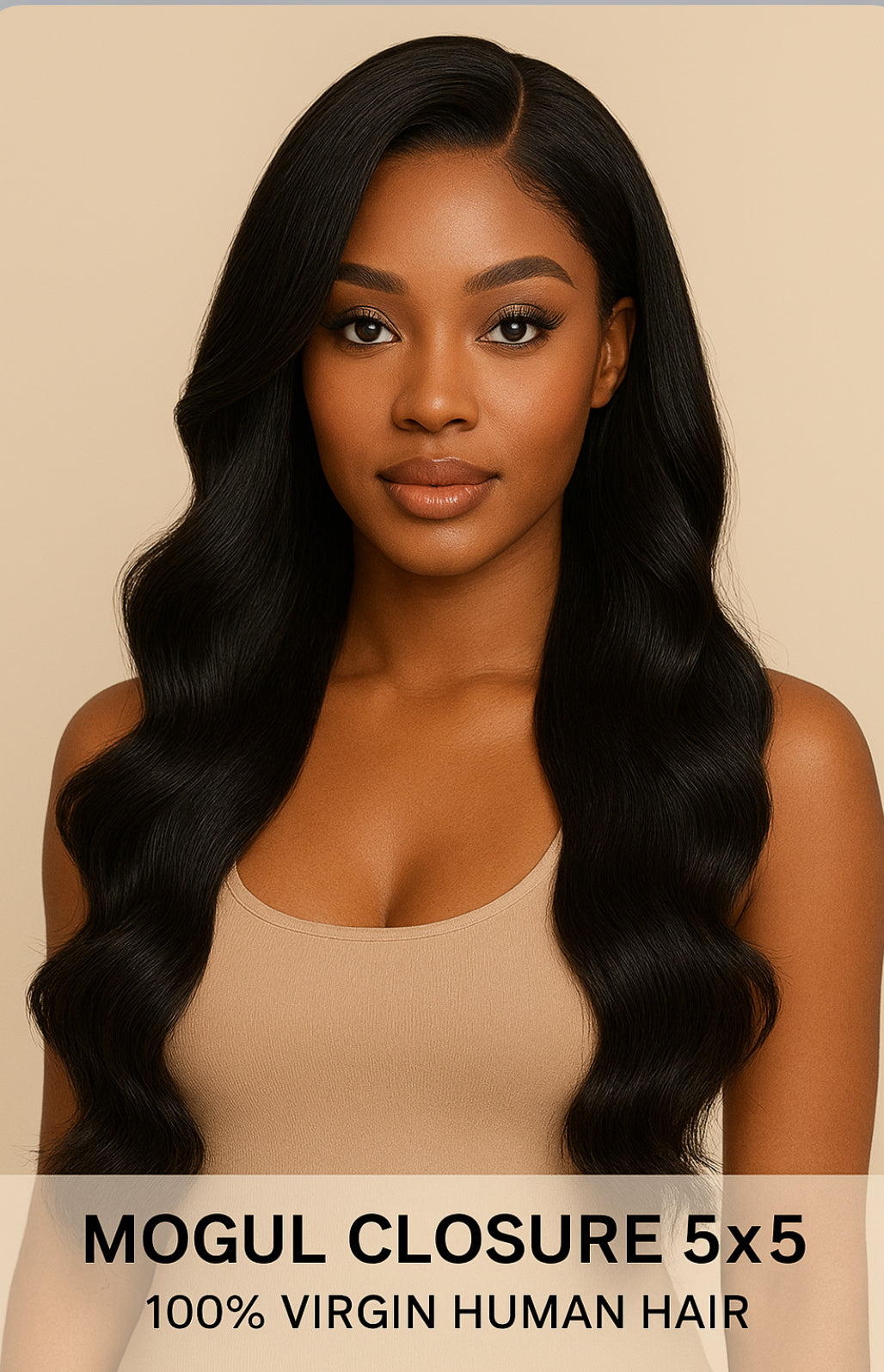Experience a flawless melt with our Luxury Mogul HD 5x5 Closure, crafted from 100% virgin human hair for the most natural look and feel.The ultra-thin HD lace blends seamlessly into any skin tone, creating a invisible and realistic hairline. Designed to provide full parting and versatile styling. This closure is perfect for achieving a salon-quality install every time.